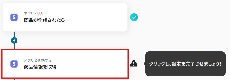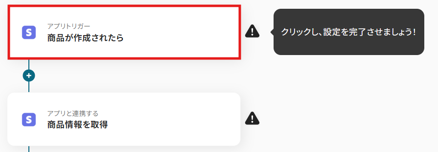 トリガーアクションは、「商品が作成されたら」のままで次に進みましょう!
