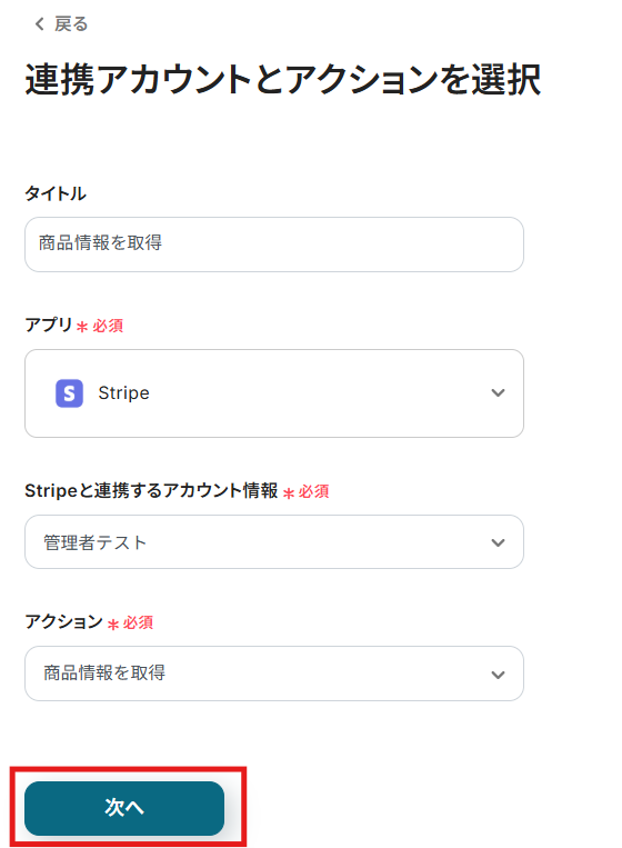 次に、ステップ3でStripeに作成した商品の詳細情報を取得する設定を行います。