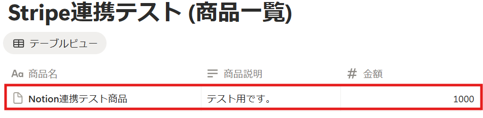 Notionのデータベースに、Stripeで作成した商品の情報が記録されました!