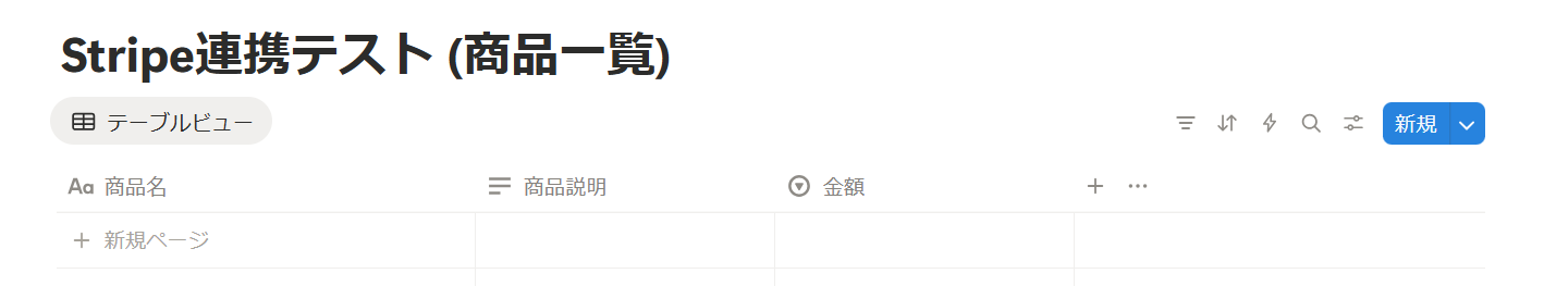 まず、Stripeで作成された商品情報を記録するためのNotionデータベースを作成しましょう!