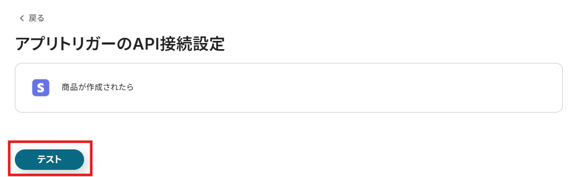Stripeでテスト用の商品を作成したら、Yoomの操作画面に戻り、「テスト」をクリックしてください。