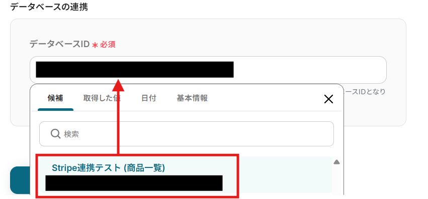 編集欄をクリックすると、Notionのデータベース候補が表示されるので、連携したいデータベースを選んでください。