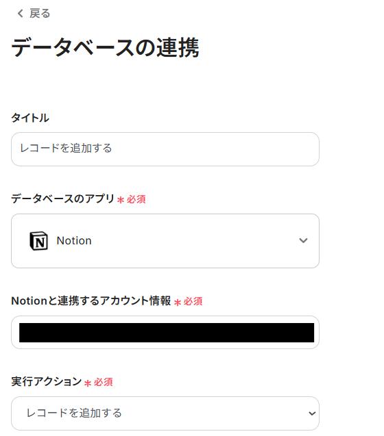 Stripeと同様に、ステップ1でマイアプリ連携したNotionのアカウント情報が自動で表示されます。