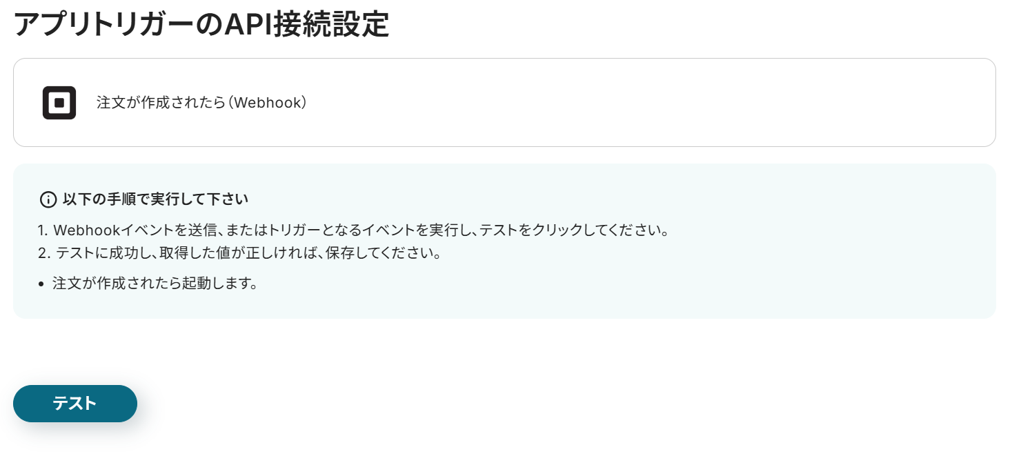 注文を作成したらYoomに戻り、テストをクリックしましょう。