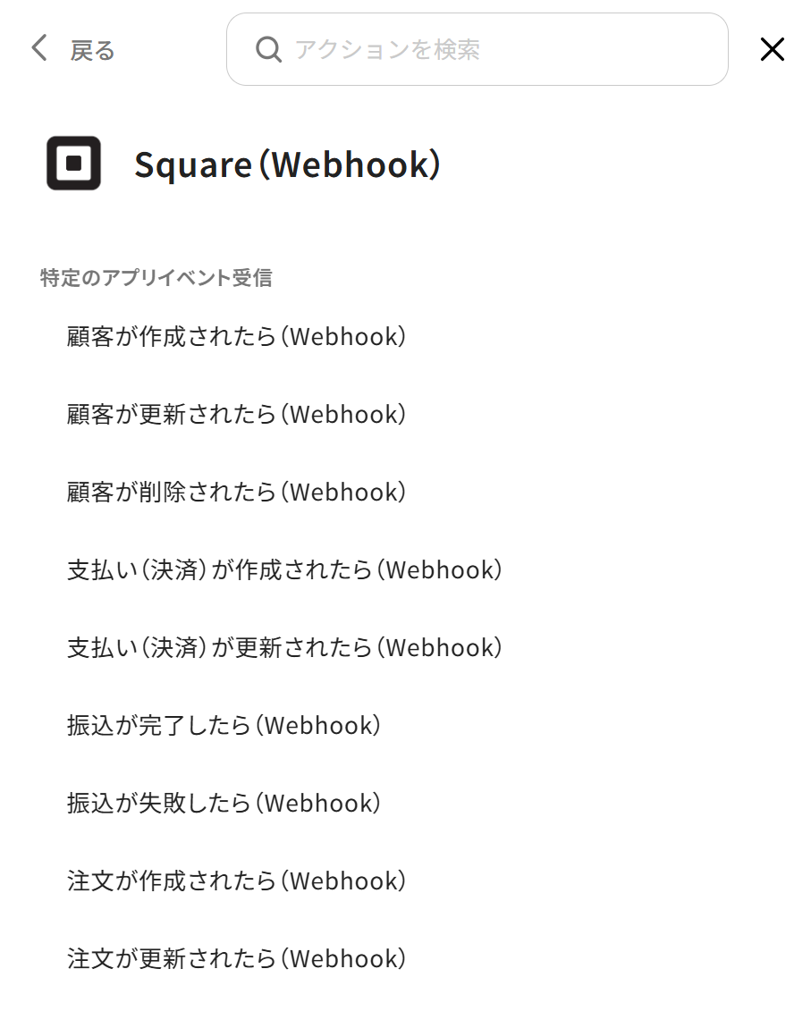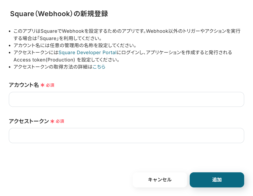 続いて、Square(Webhook)をマイアプリ登録していきます。