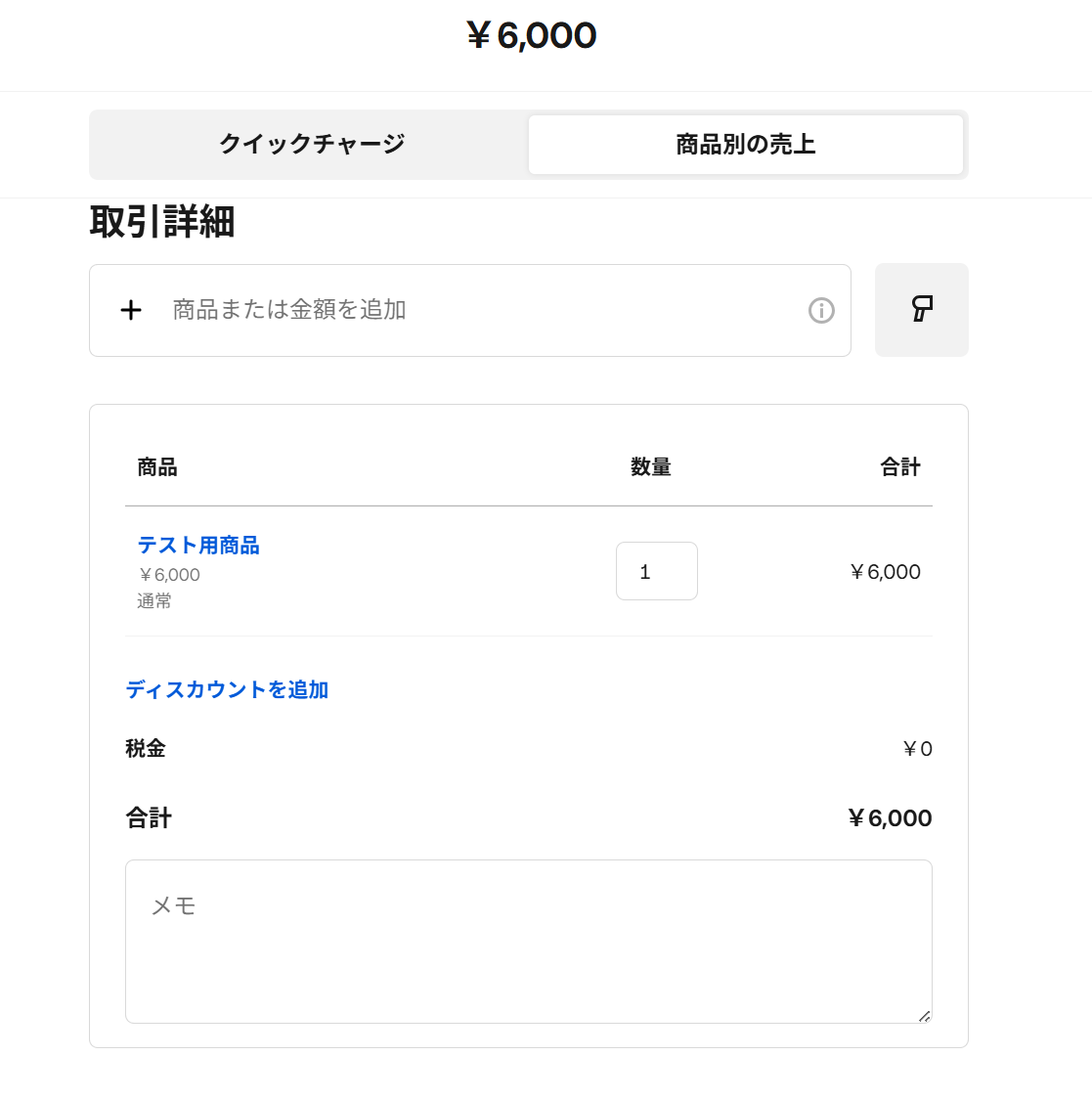 テスト操作の前に、Squareの画面で注文を作成してください。