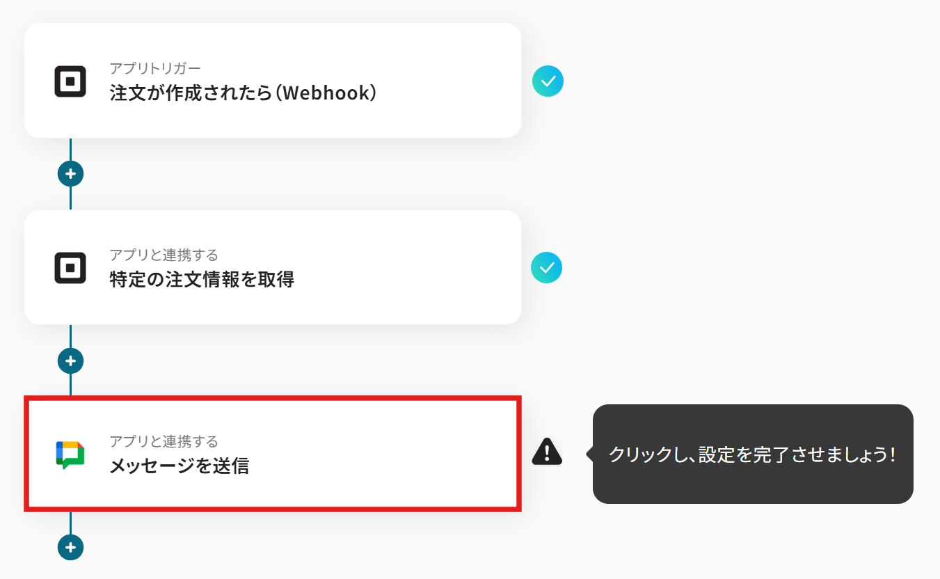 このワークフローは、SquareのWebhook機能を活用し、注文の作成をトリガーとして、注文情報を自動でGoogle Chatへ通知します。
