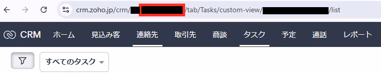 ※下図の赤枠部分が、Zoho CRMの管理画面を開いた際のURLに含まれるチャネルIDの参照位置です。