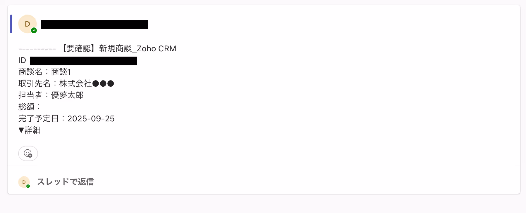※取得した値を使用することで、作成された商談に沿ったメッセージを通知できます。