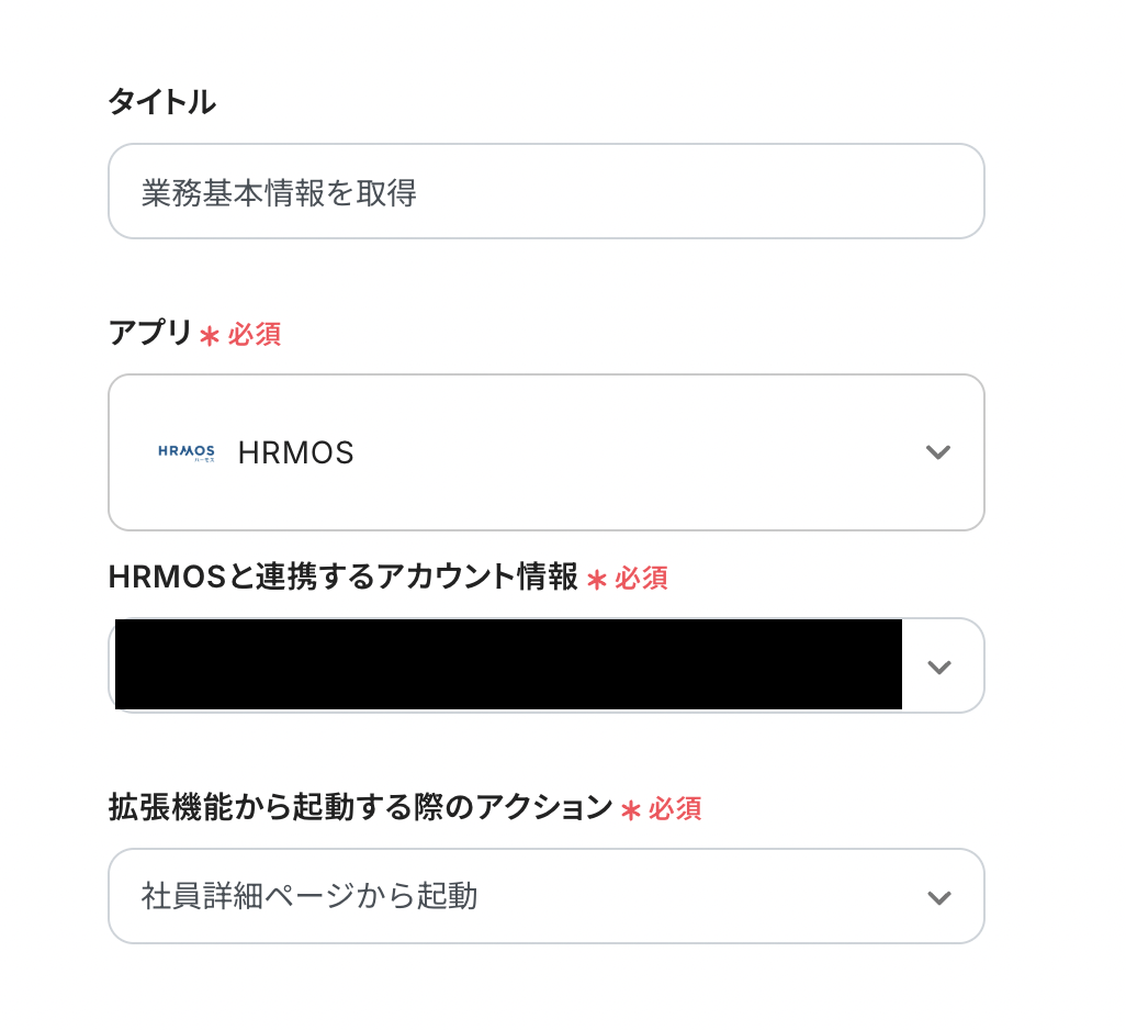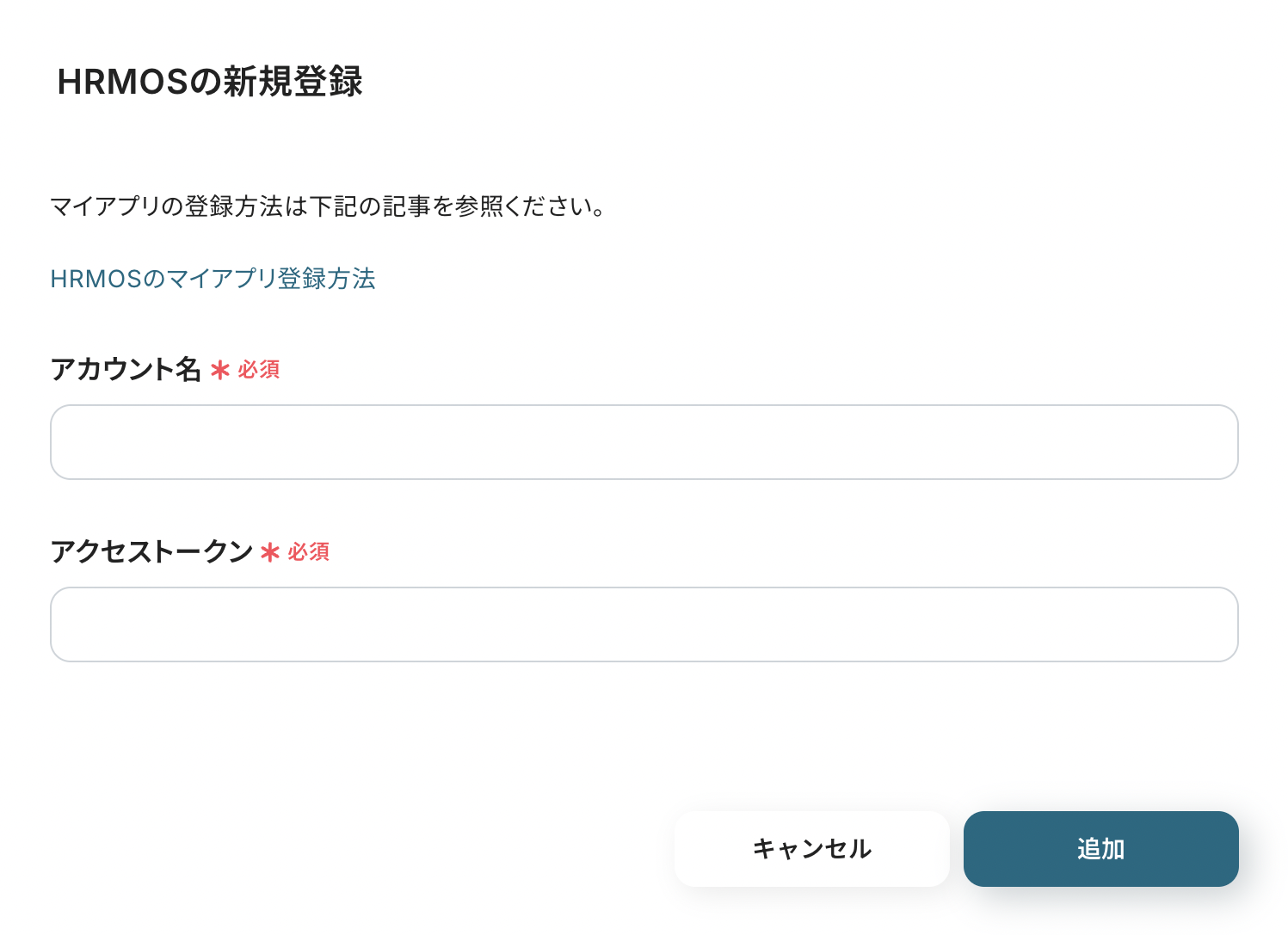 HRMOSを検索すると新規登録画面が表示されるので「アカウント名」と「アクセストークン」を入力して連携完了です!