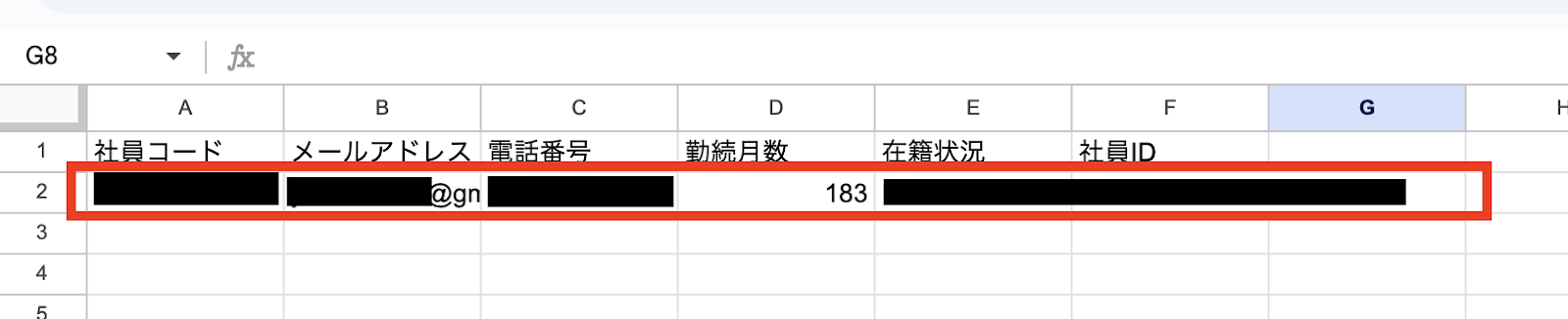 テストに成功してGoogle スプレッドシートに社員情報が追加されていればOKです!