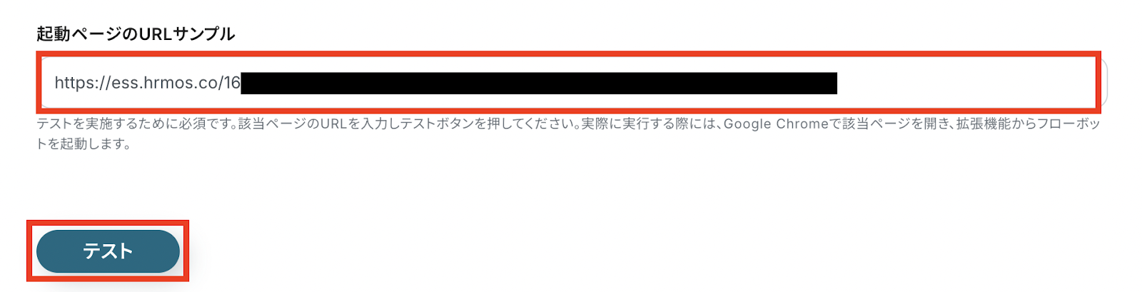 テストを実施するために社員詳細ページから「起動ページのURL」を入力して「テスト」を押します。