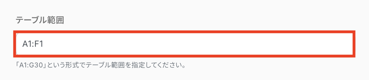 「テーブル範囲」はシートに合わせて入力してください。