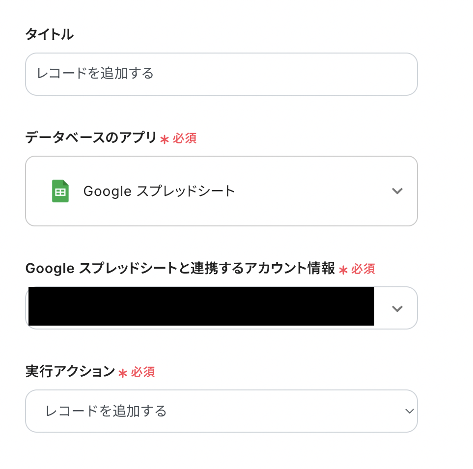 ステップ4:Google スプレッドシートのアクション設定