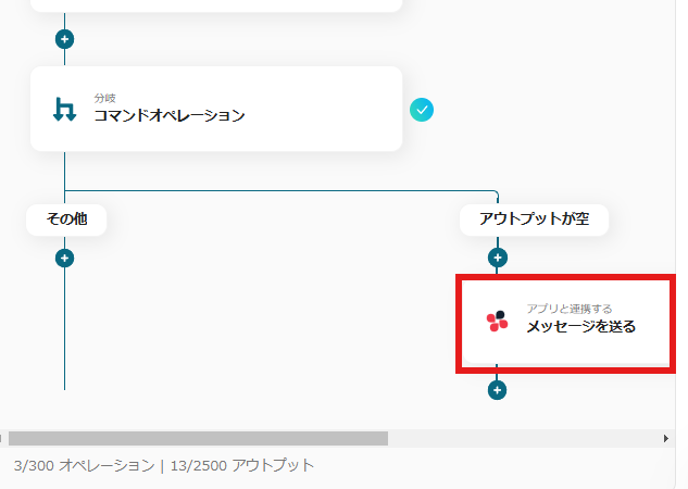メッセージ内容の箇所をクリックすると、画面下に「アウトプット」が表示されます。