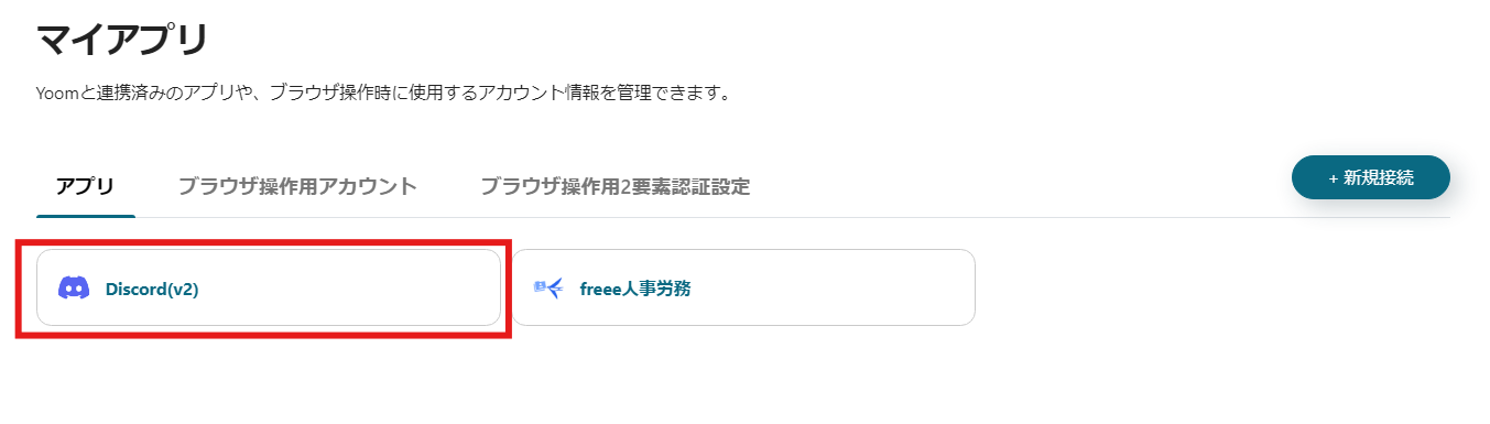 連携が完了すると、YoomのマイアプリにDiscordが表示されます。