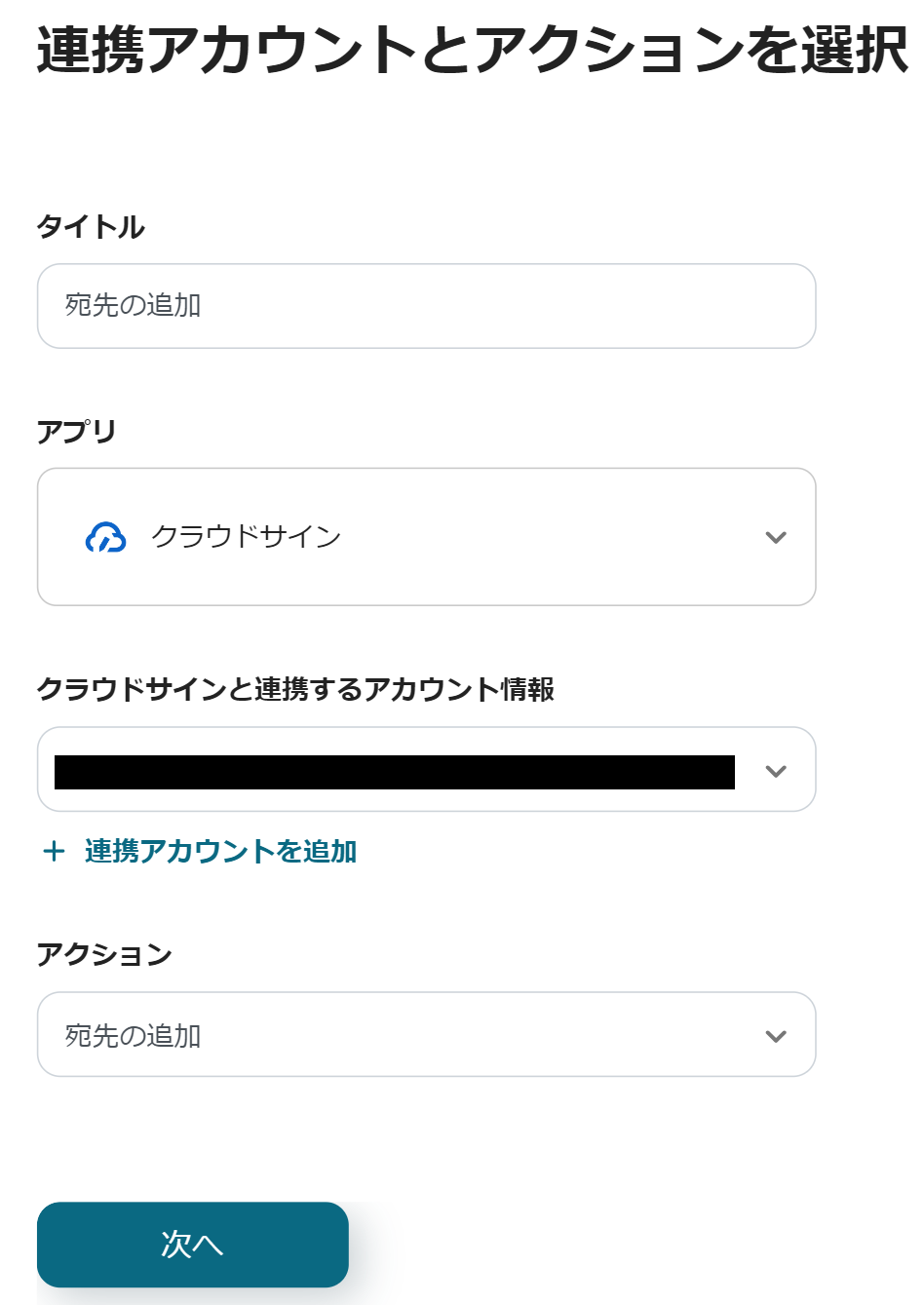 次に、クラウドサインで宛先を追加する設定を行うため、「宛先の追加」をクリックしましょう。