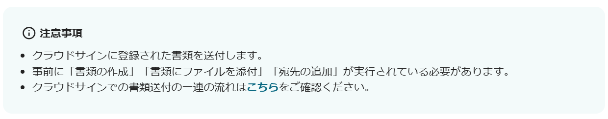 次に、クラウドサインで書類の送付設定を行うため、「書類の送信・リマインド」をクリックしてください。