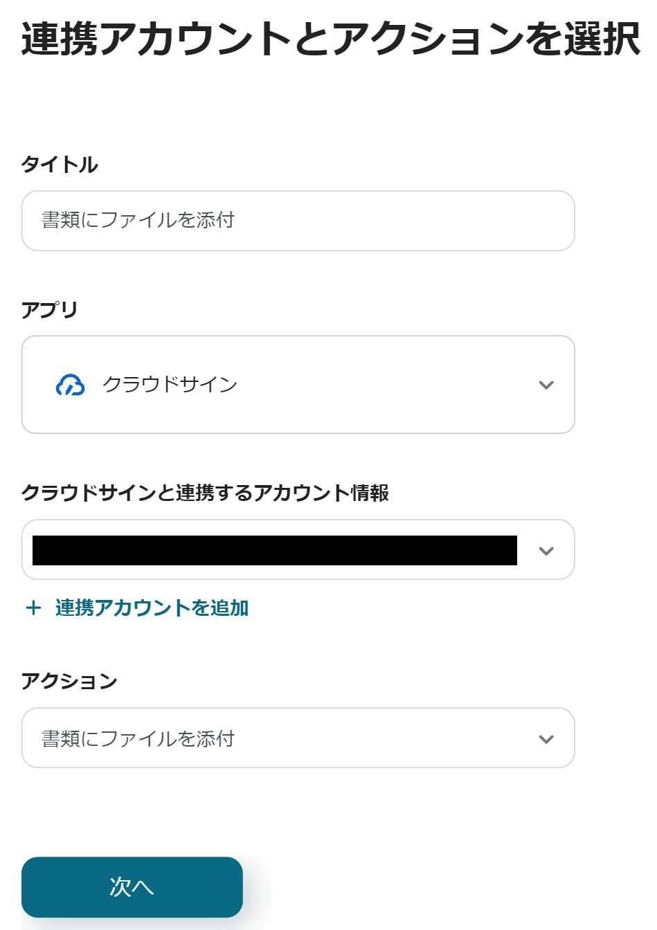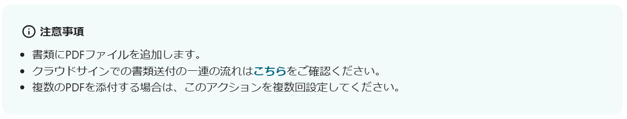 次に、クラウドサインでファイルを添付する設定を行うため、「書類にファイルを添付」をクリックしてください。