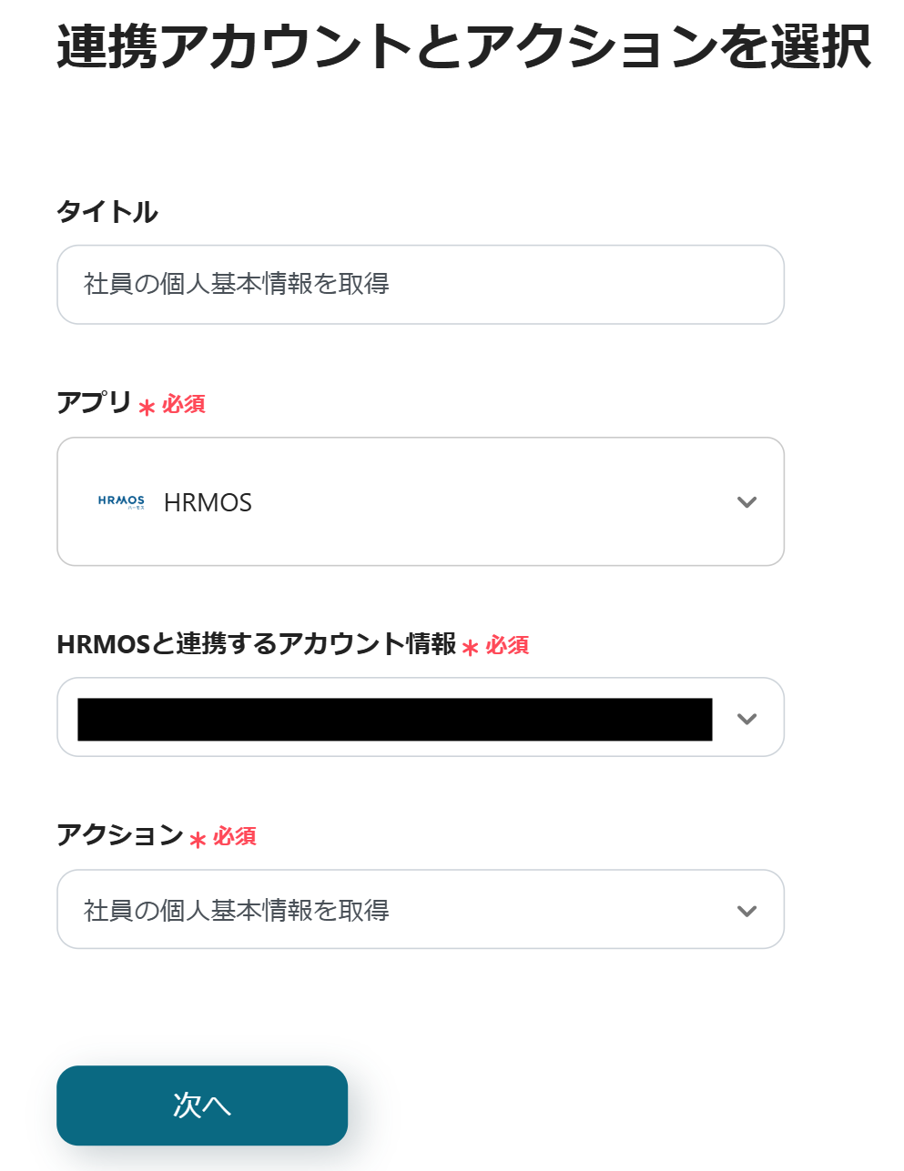 次に、社員の個人情報を取得する設定を行うため、「社員の個人基本情報を取得」をクリックしましょう。