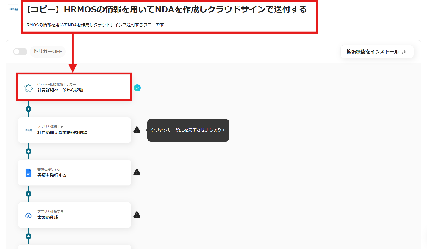 それではここからノーコードツールYoomを使って、「HRMOSの情報を用いてNDAを作成しクラウドサインで送付する」方法をご説明します。