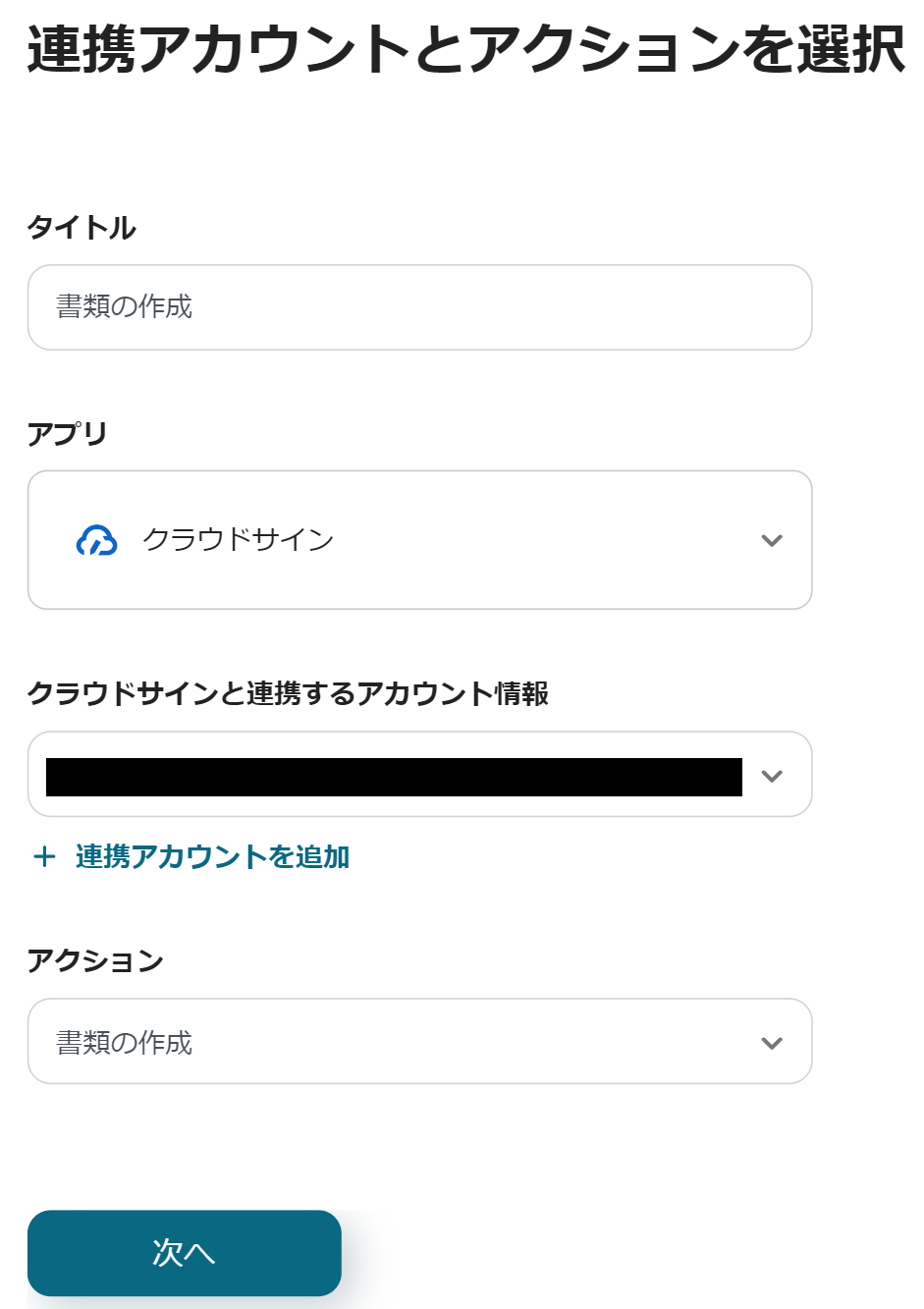 次に、クラウドサインの設定を行うため、「書類の作成」をクリックします。