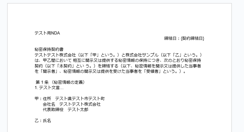 次に、テスト用の雛形書類としてGoogle ドキュメントでNDAを作成します。