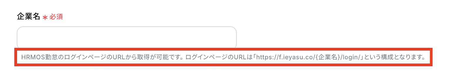 「企業名」を赤枠の説明文に基づいて入力します。