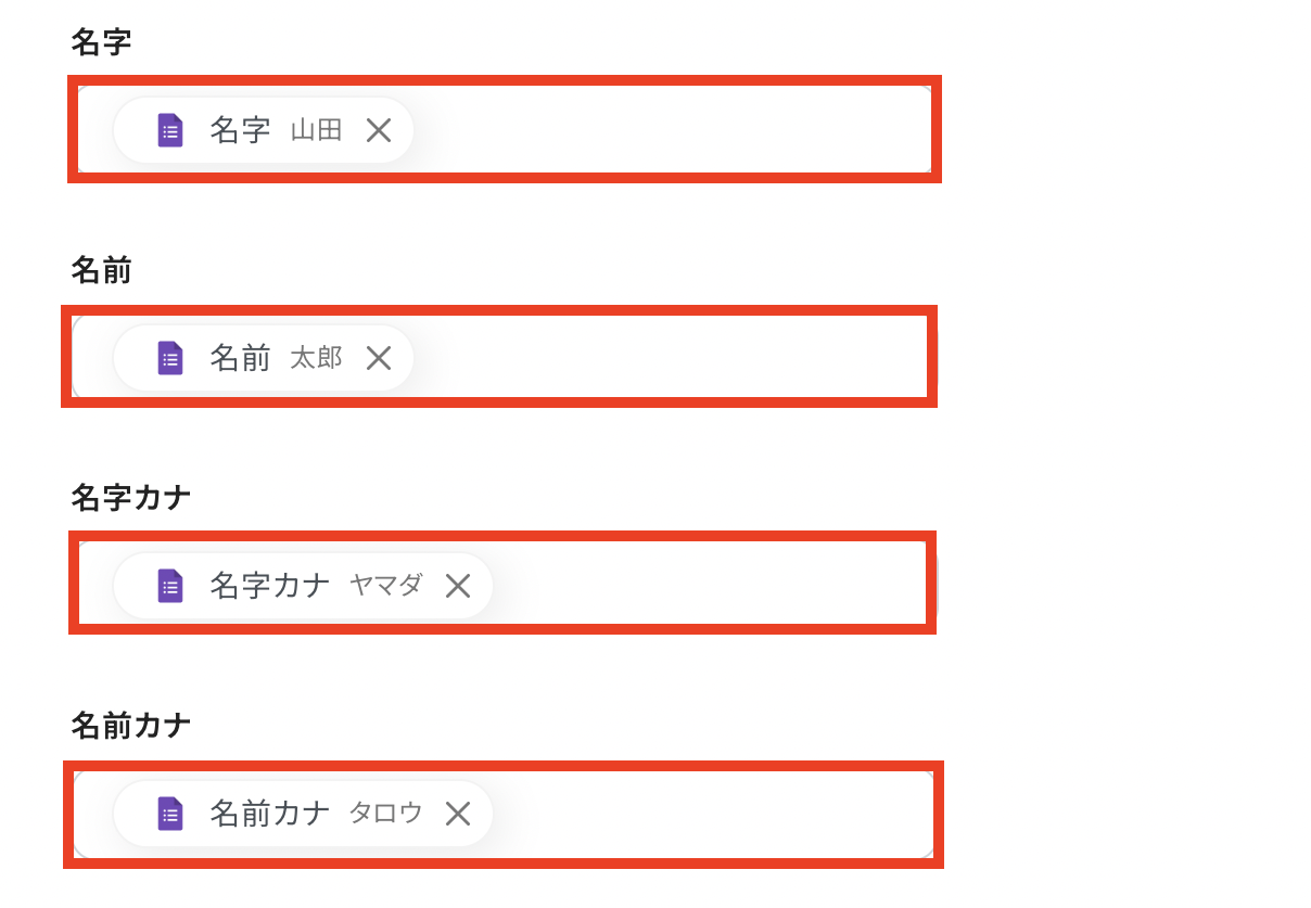 同じ要領で他の項目についても、Googleフォームの回答内容を埋め込みましょう!