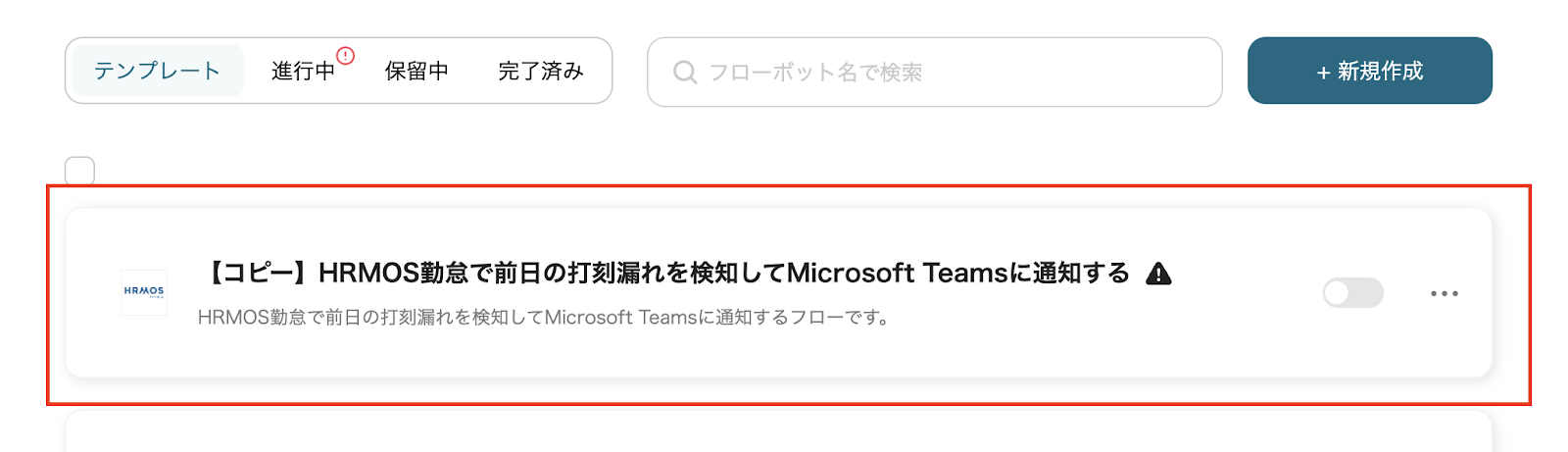 では、「HRMOS勤怠で前日の打刻漏れを検知してMicrosoft Teamsに通知する」のテンプレートを使ったフローボットを作成していきましょう。
