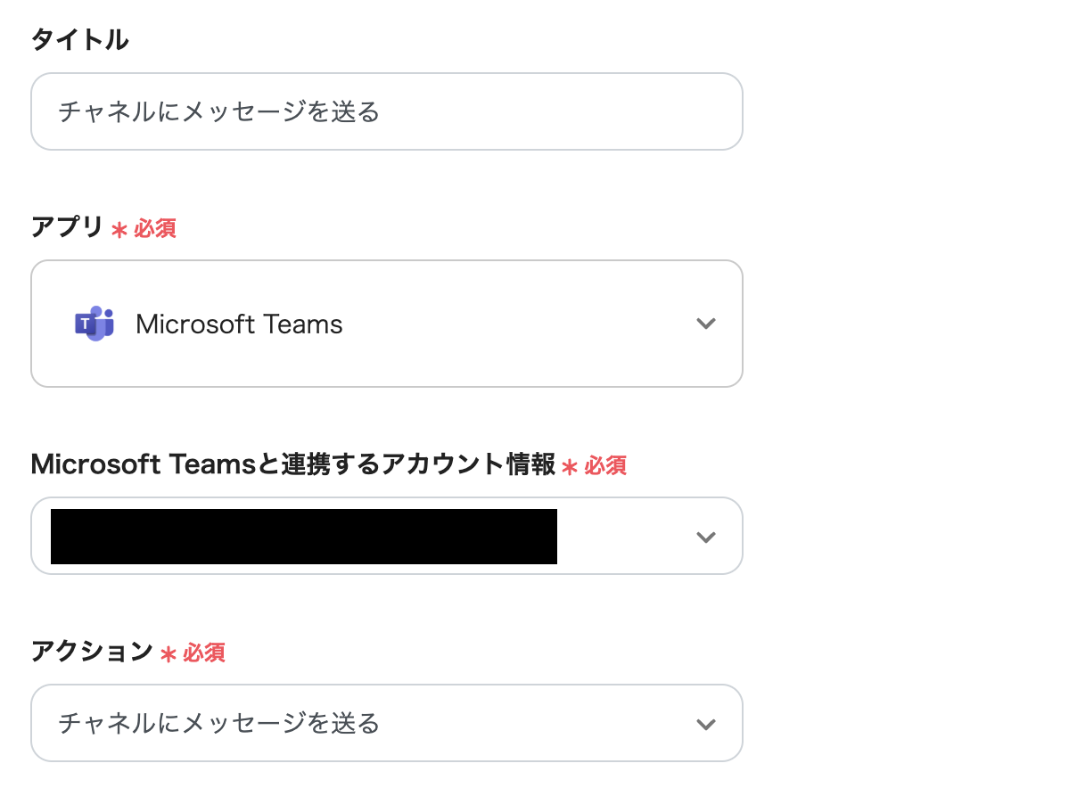 (3)次画面で「チームID」などの項目に情報を入力します。