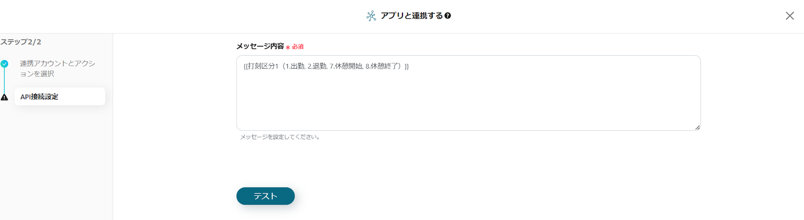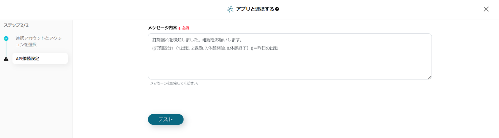 他、打刻区分により退勤、休憩などの打刻がされていないことを通知する自動化も可能です。