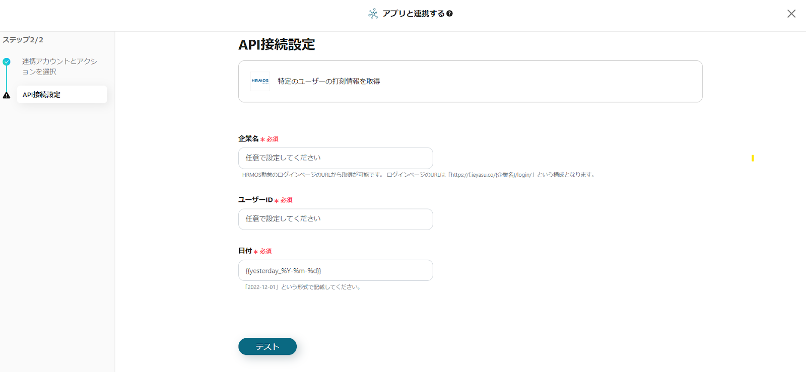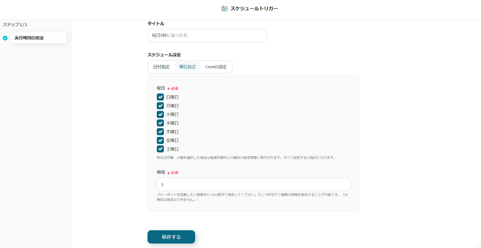 どの曜日の何時にHRMOS勤怠の勤怠データを取得するのか設定します。