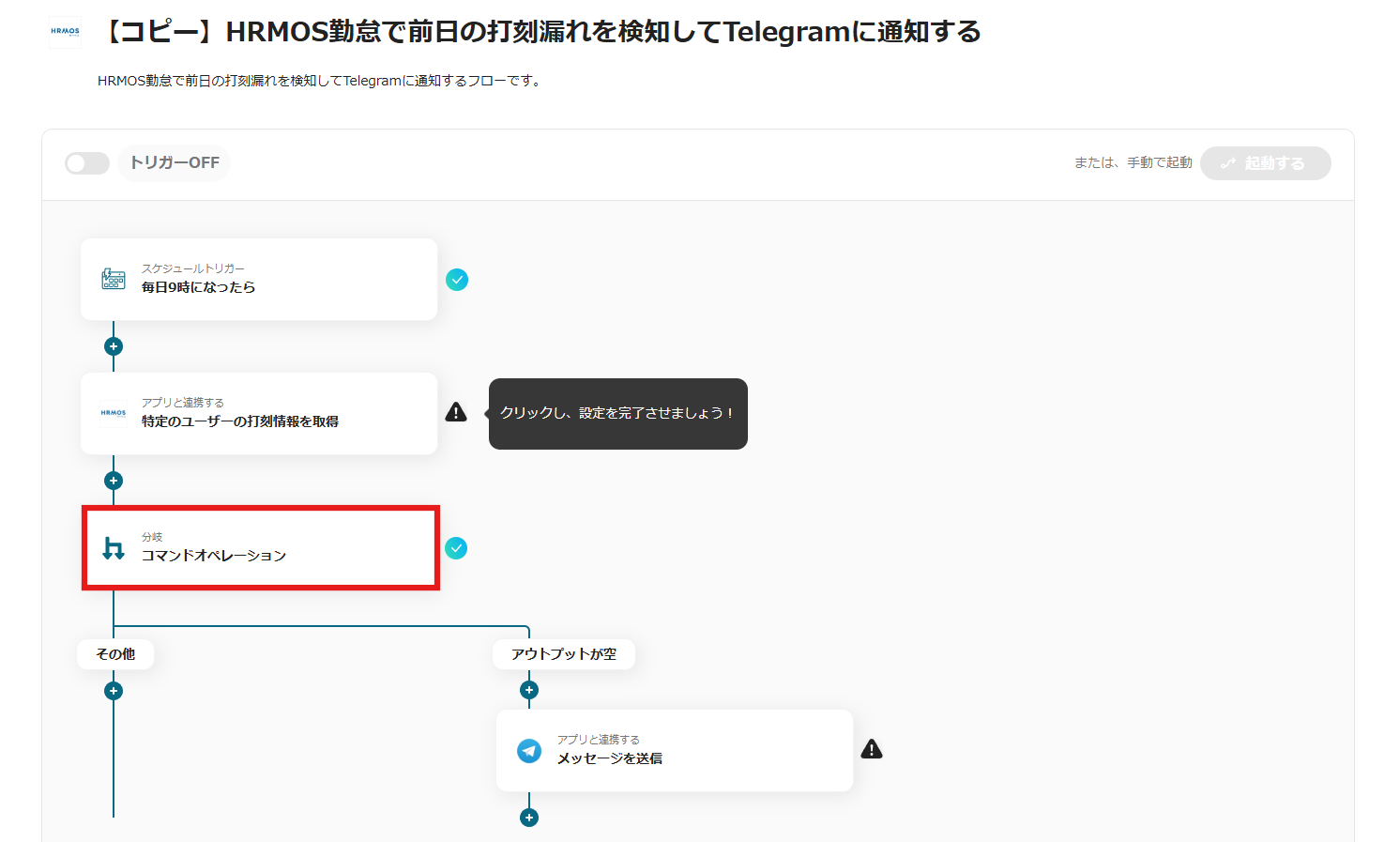 「【コピー】HRMOS勤怠で前日の打刻漏れを検知してTelegramに通知する」をクリックします。