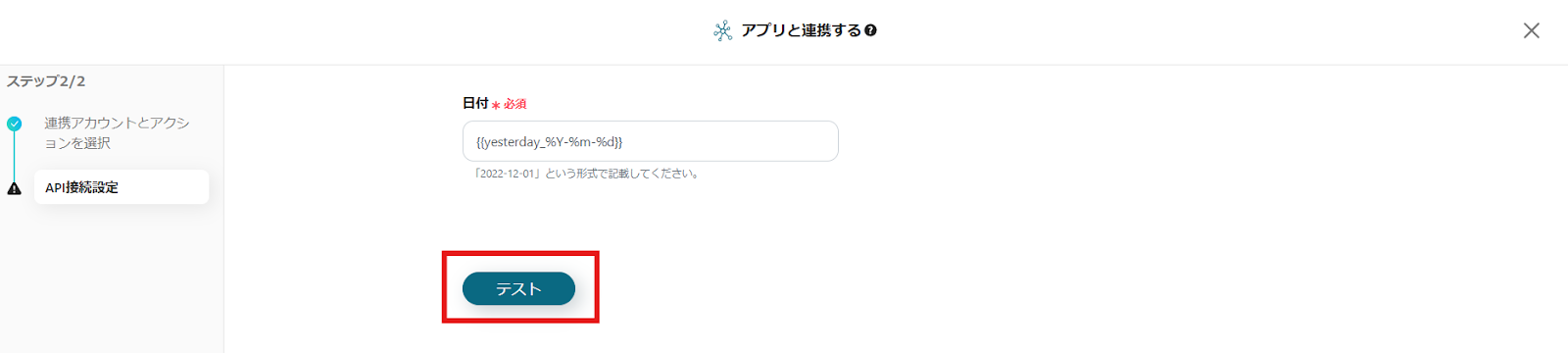 画像のように設定が完了したら、画面下にあるテストボタンを押します。