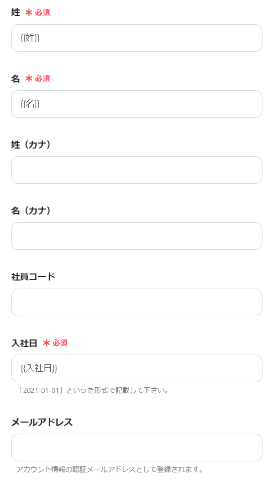 今回は、HRMOSへ登録すべく必要な項目を新入社員に回答してもらうために、フォームトリガーを利用してみました。
