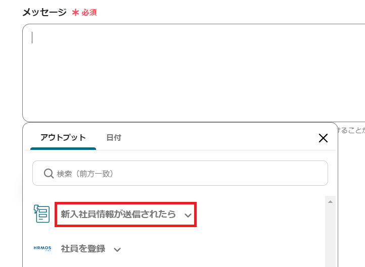 HRMOSで社員情報が登録されると、ここで選択したチャンネルにメッセージが投稿されます。関係者がいるチャンネルをチョイスしましょう。