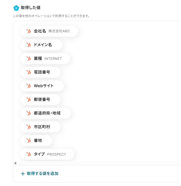 「HubSpotで新しい会社が作成されたら、Misocaに取引先を作成する」ワークフローは、HubSpotの会社データを引き渡し、Misoca側に取引先を自動登録します。