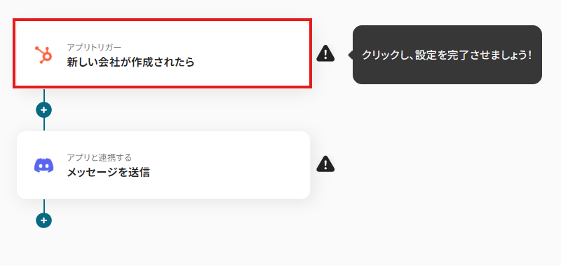 HubSpot APIを利用して「新しい会社が作成されたら」というイベントをアクションの起点として使用することで、社内チャットツールへの通知を自動化できます。