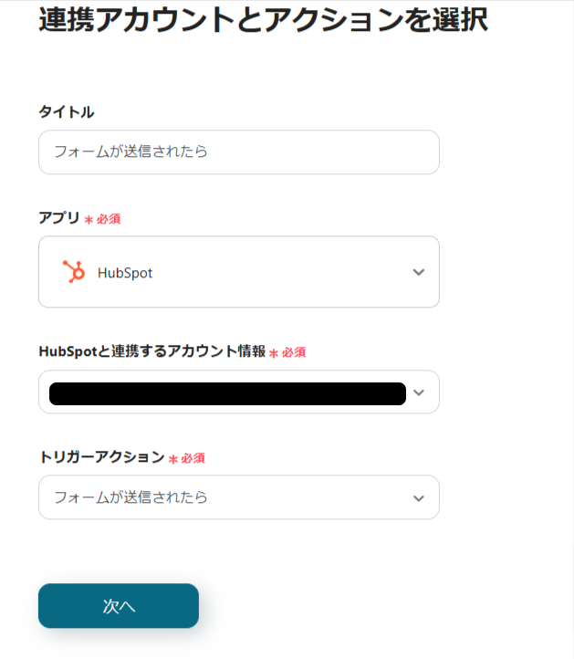 1ページ目はHubSpotと同様にアカウント情報の確認とタイトルの修正を行い次に進んでください。