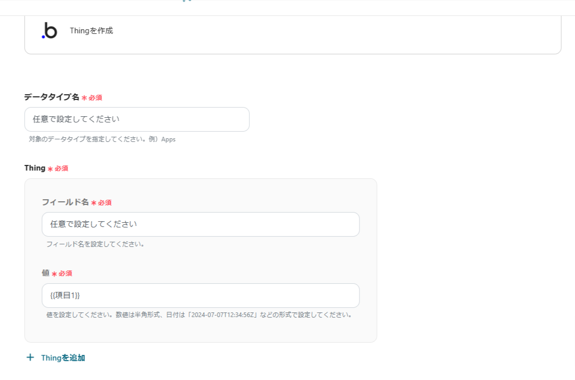 反映させる内容を増やしたい場合は「+Thingを追加」をクリックして同様に入力してください。