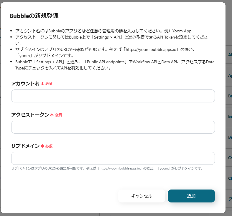 Bubbleのマイアプリ連携には、アクセストークンが必要です。