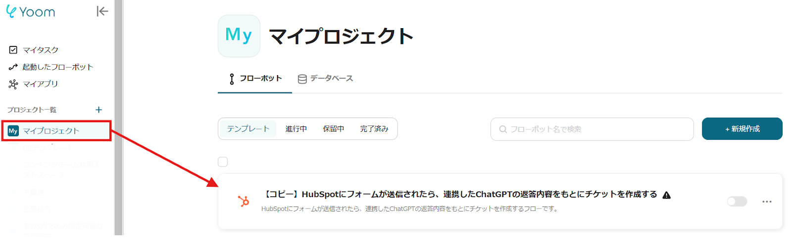 ここからは、Yoomのテンプレート【HubSpotにフォームが送信されたら、連携したChatGPTの返答内容をもとにチケットを作成する】という連携フローを使って設定の解説をします。