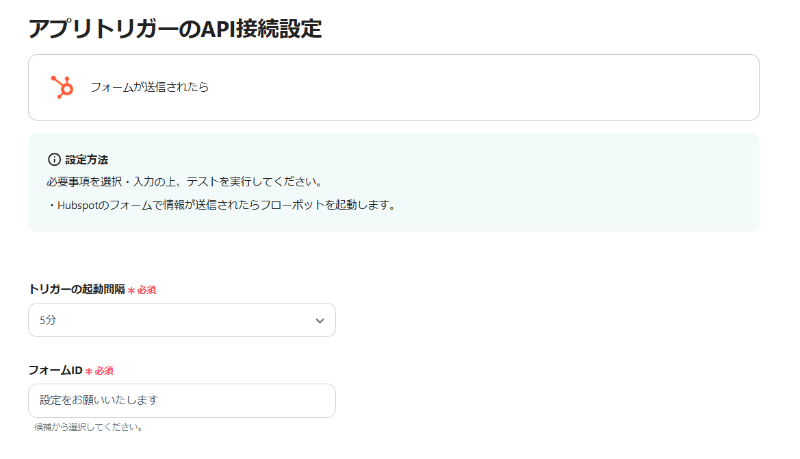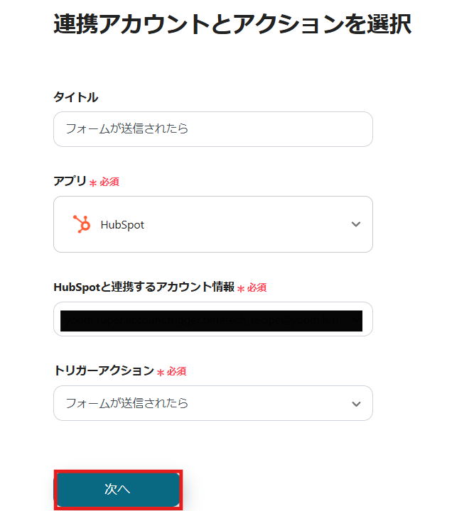 HubSpotを選択できたら、使用するアカウントで設定を行ってください。