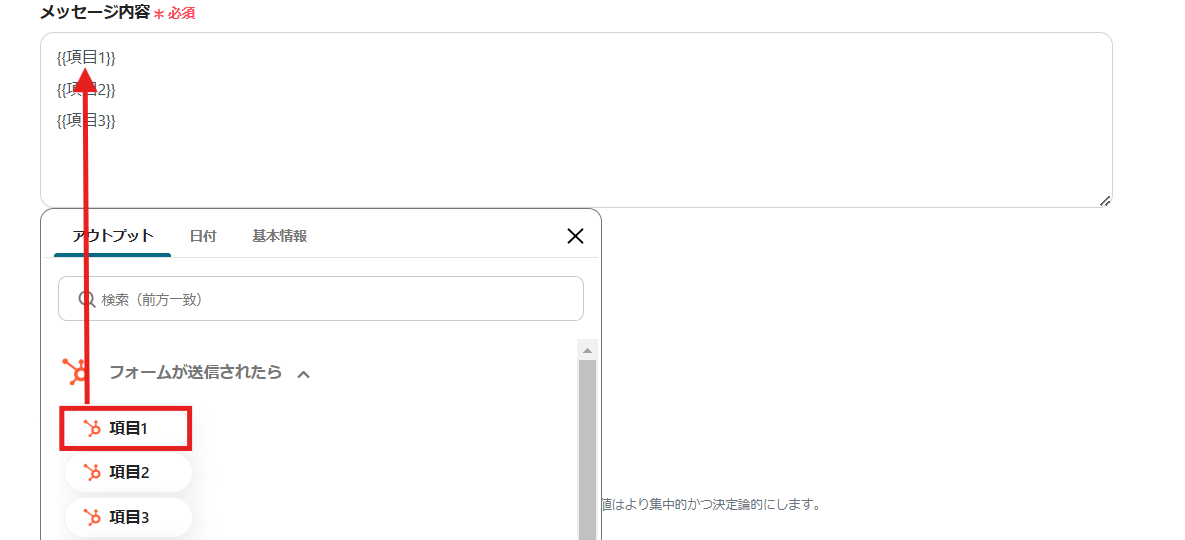メッセージ内容はアプリが連携出来ていると候補から選択が可能です。