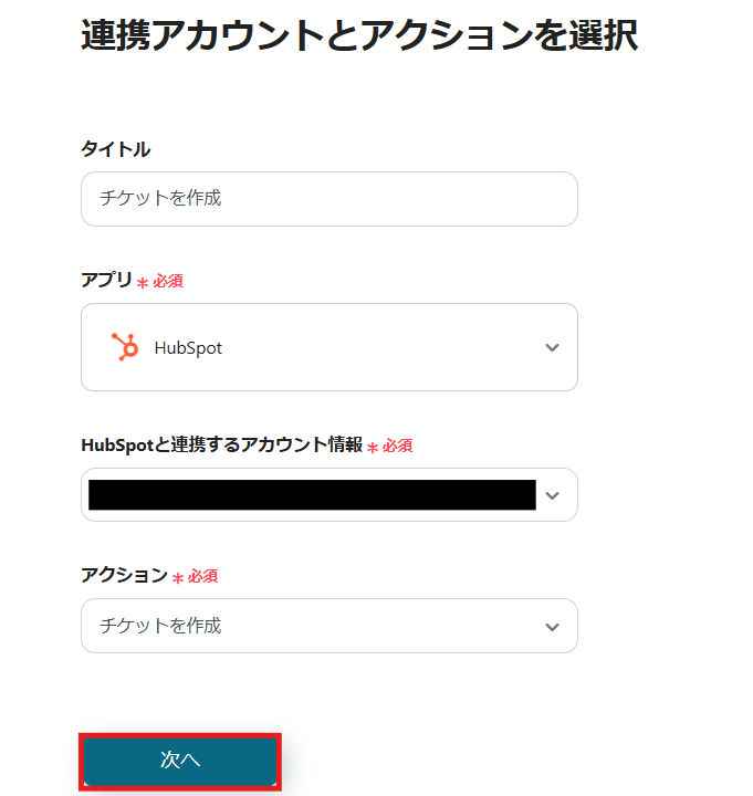 HubSpotを選択できたら、使用するアカウントで設定を行ってください。
