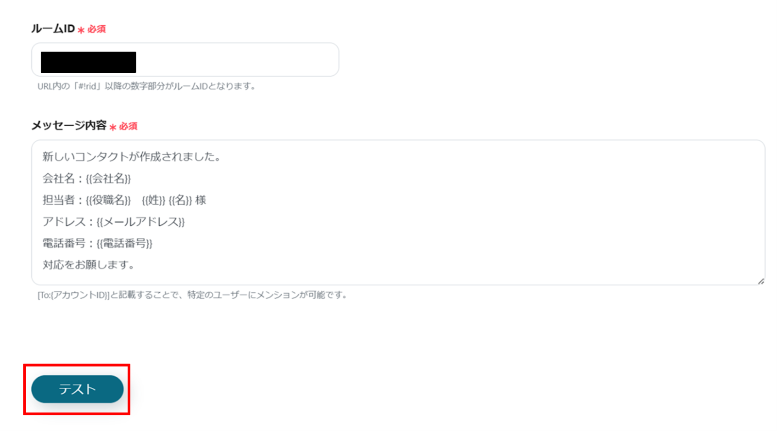 (1)次に、Chatworkと連携してメッセージを送ります。