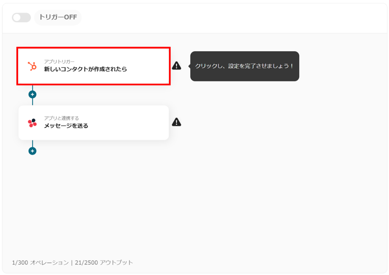 それでは、実際にテンプレートを使用して「HubSpotのコンタクトにリードが登録されたら、Chatworkに通知する」フローを一緒に作っていきましょう!