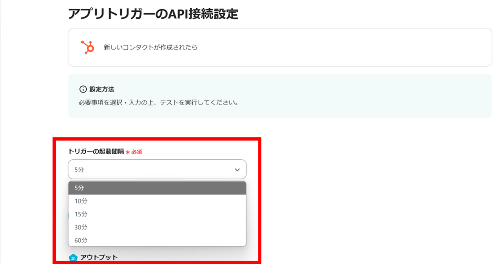 (3)「アプリトリガーのAPI接続設定」画面から、トリガーの起動間隔を選択します。