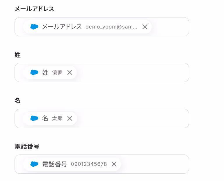 同じ要領で、「メールアドレス」や「姓」「名」なども設定してみてくださいね!